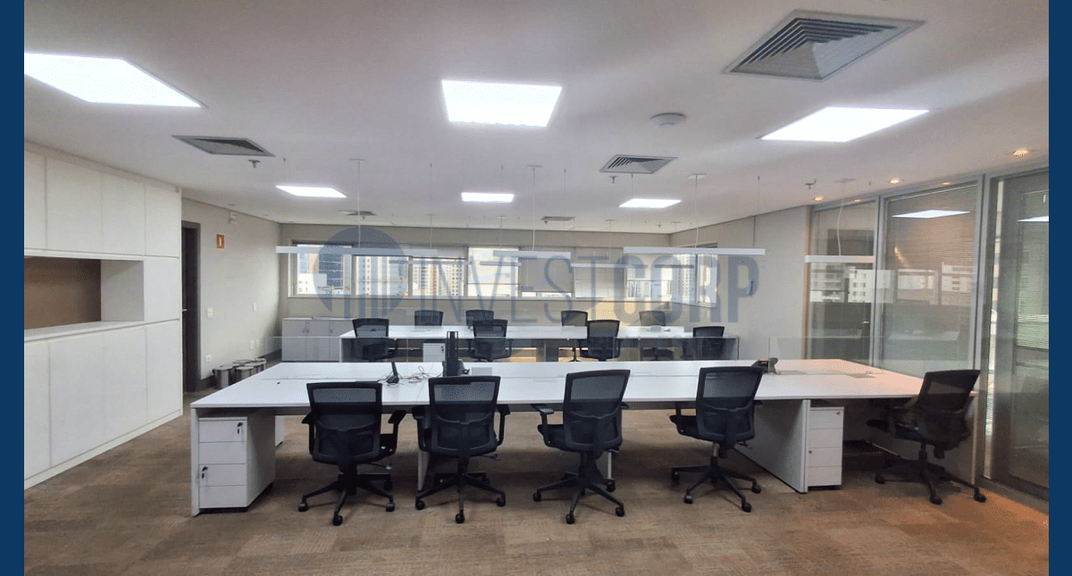 Conjunto comercial disponível para locação no Ed. Millenium, localizado na Av. Brigadeiro Faria Lima, 3015. O espaço encontra-se semi mobiliado e com estrutura para 20 posições de trabalho e 3 salas de reunião. A região dispõe de uma vasta oferta de transporte público, além de muitos restaurantes e opções de cultura e lazer.